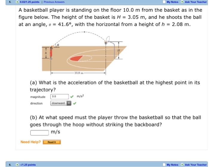 The height of the basket is H 305 m and he shoots the ball at an angle đ 432 with the horizontal from a height of h 206 m. A What is the. The height of the basket is H 305 m and he shoots the ball at an angle.